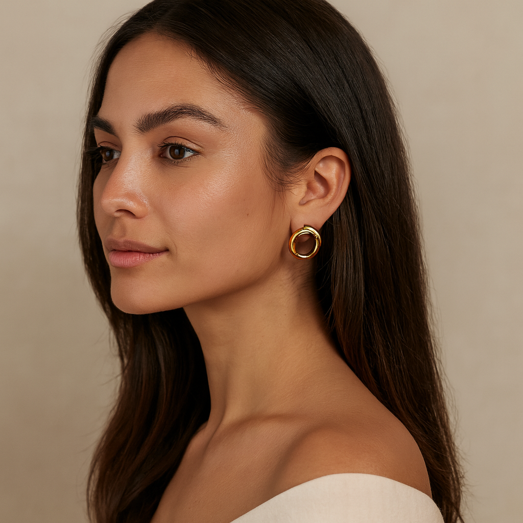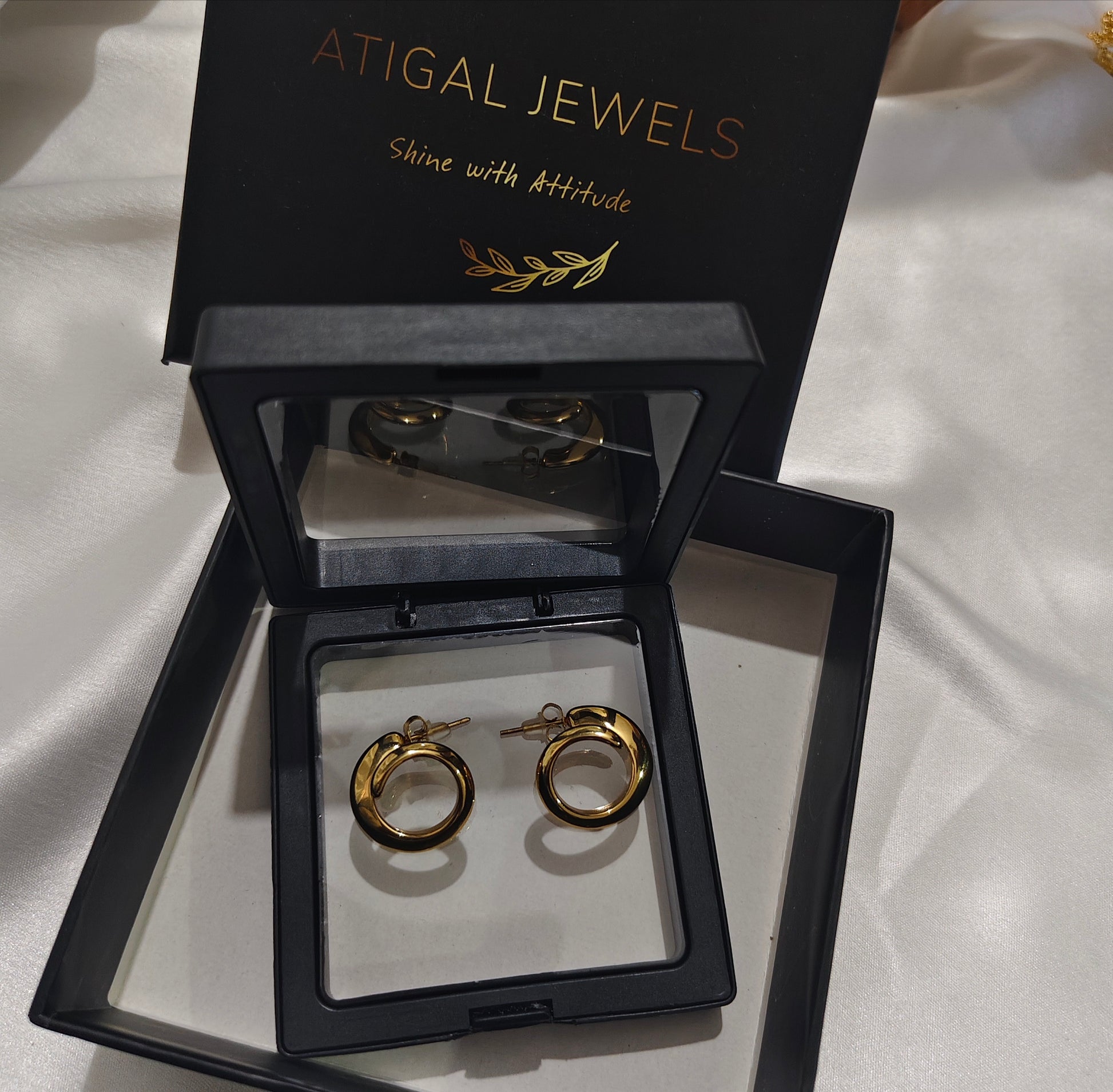 These premium gold-plated loop studs feature a chic circular design with a subtle twisted finish, making them a versatile accessory for both casual and festive looks. The high-polish shine gives a rich, premium appeal while the sturdy push-back closure ensures all-day comfort.