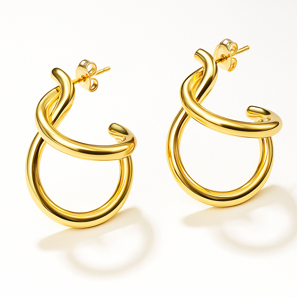 Add a touch of modern sophistication with our Golden Twist Hoop Earrings, designed for women who love effortless glamour. These anti-tarnish earrings feature a unique double-hoop twist design, giving a bold yet graceful look that perfectly complements any outfit — from casual chic to evening wear.